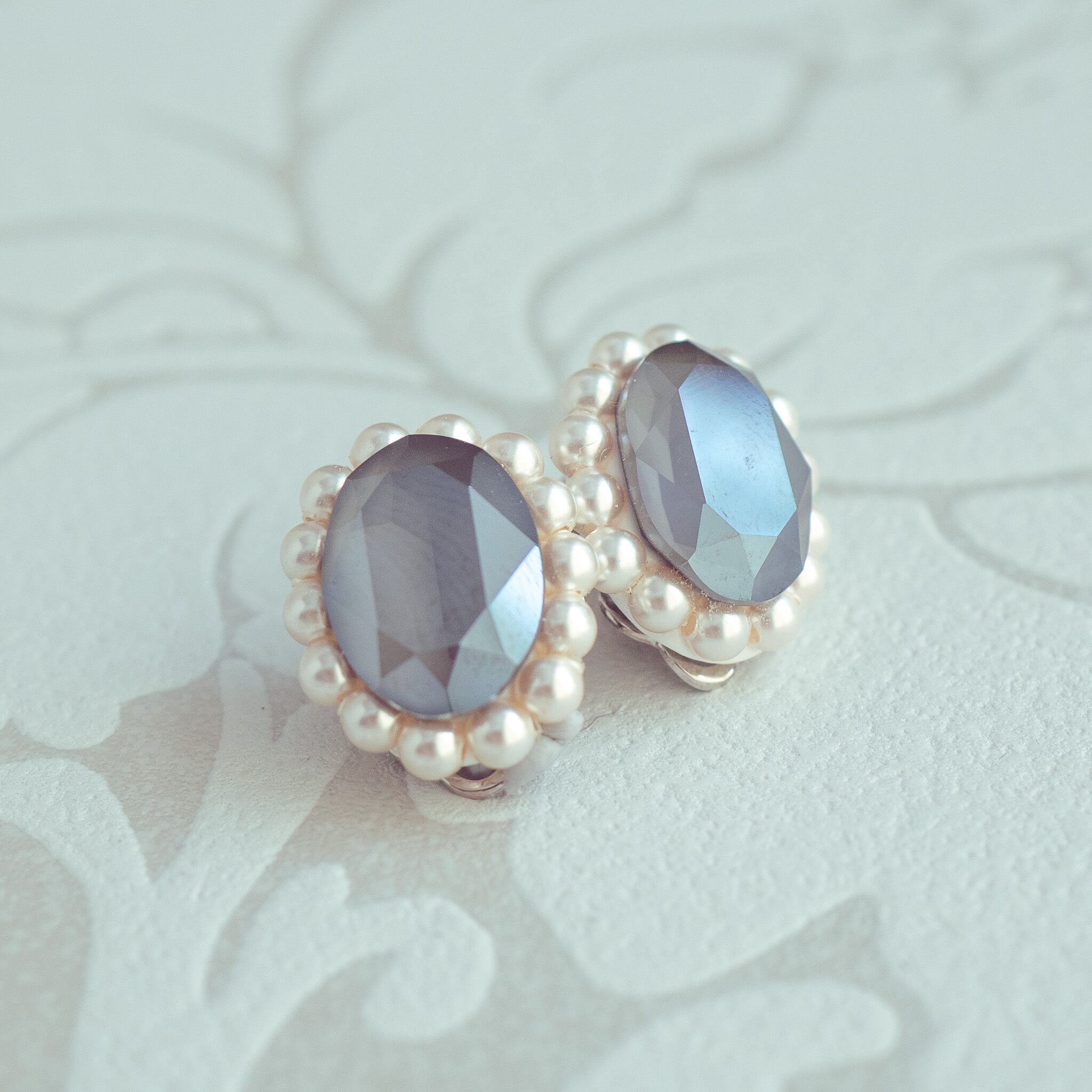 エレガンスと輝きを兼ね備えた【完成品】Petit Bonbon Drop ダークグレーイヤリングです。この美しいアクセサリーは、大きさビジューをツヤツヤのパールで縁取り、上品に耳元で煌めきます。どんなシーンにも合う洗練されたデザインは、普段使いから特別な日のアクセントとしても大活躍!
