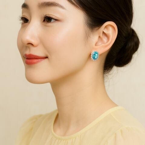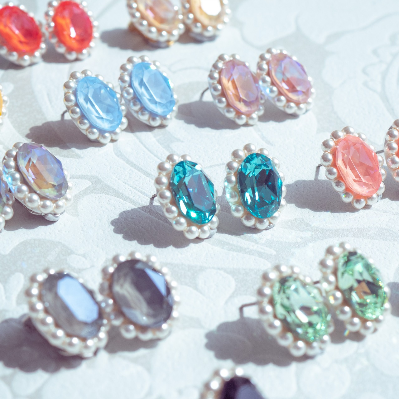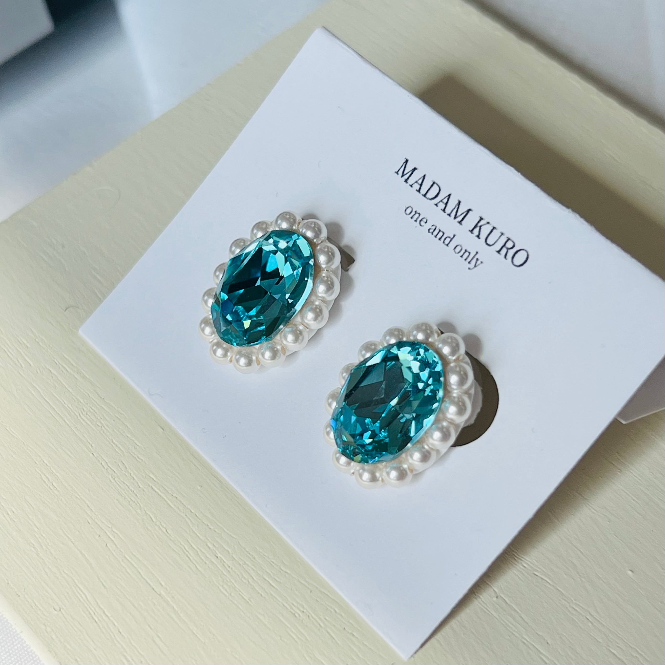エレガンスと輝きを兼ね備えた【完成品】Petit Bonbon Drop ライトターコイズピアスです。この美しいアクセサリーは、大きさビジューをツヤツヤのパールで縁取り、上品に耳元で煌めきます。どんなシーンにも合う洗練されたデザインは、普段使いから特別な日のアクセントとしても大活躍!