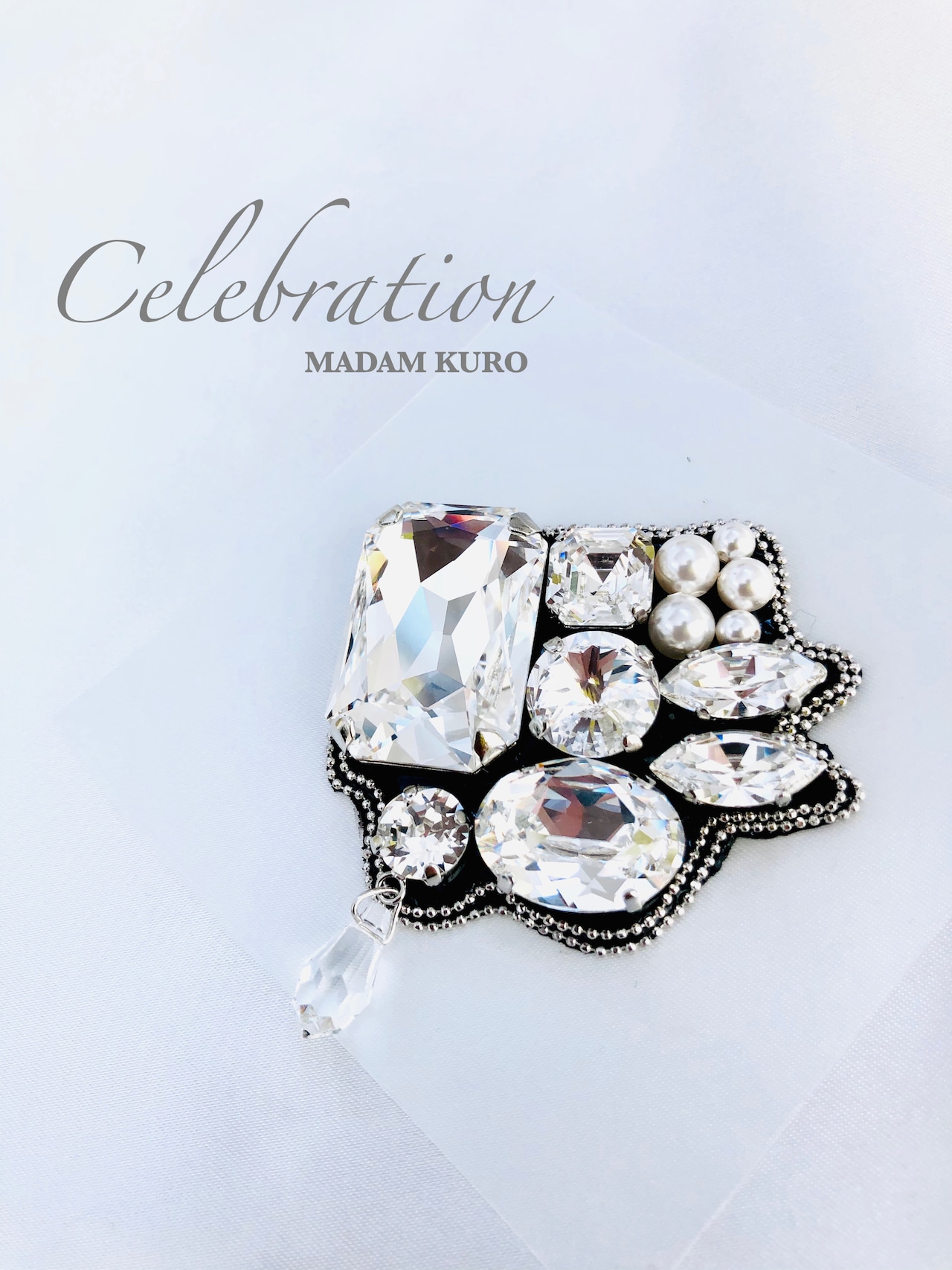 大きなスワロフスキー®️・クリスタルの美しさを存分に味わうことのできるブローチです。